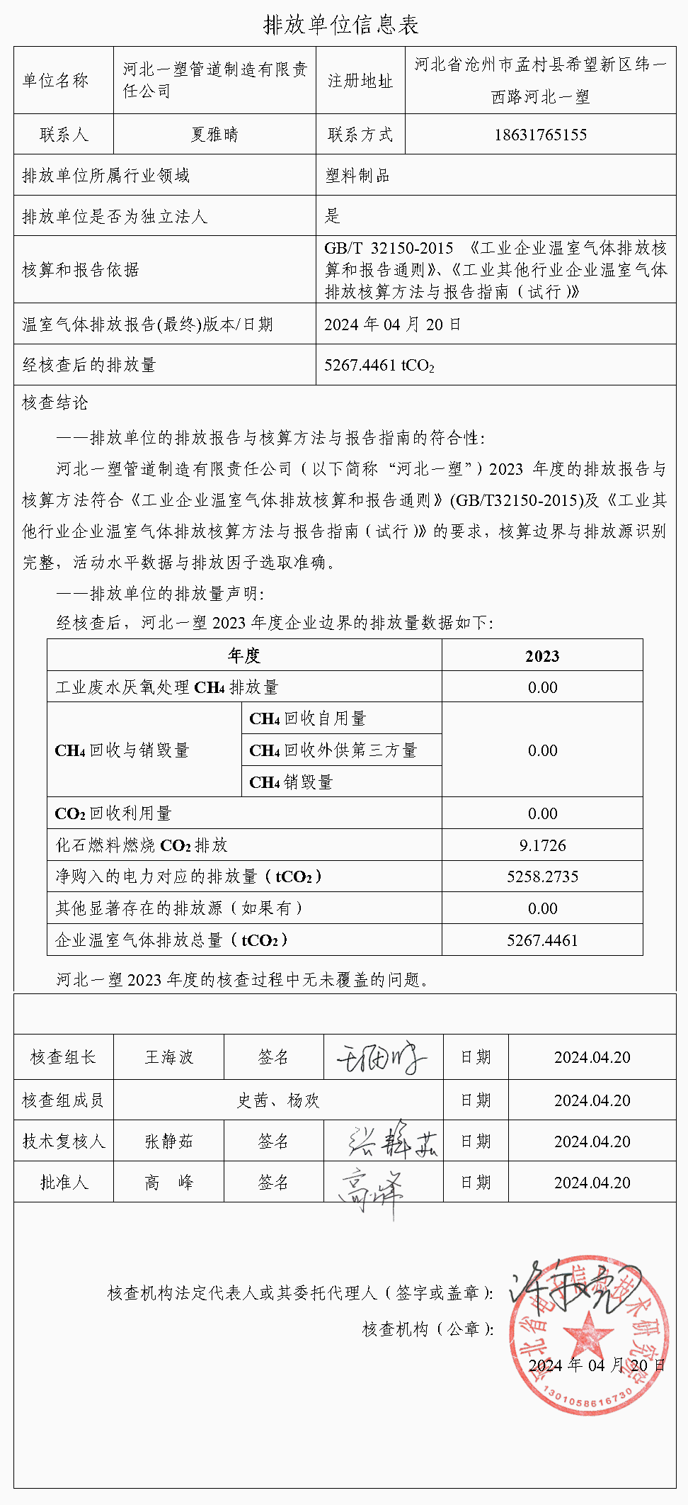 2023年度溫室氣體排放核查報告